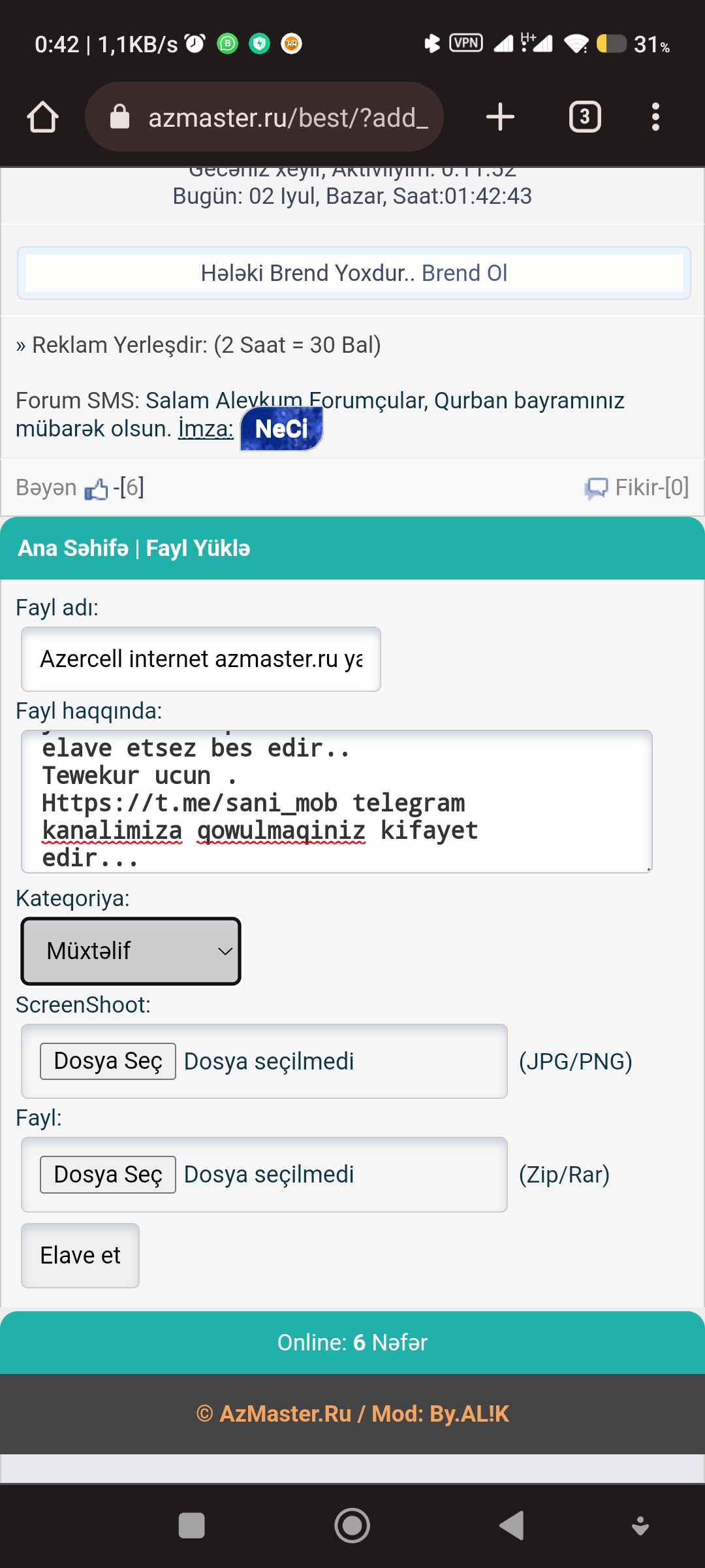 salam zehmet olmasa yukleme scripti elave edin